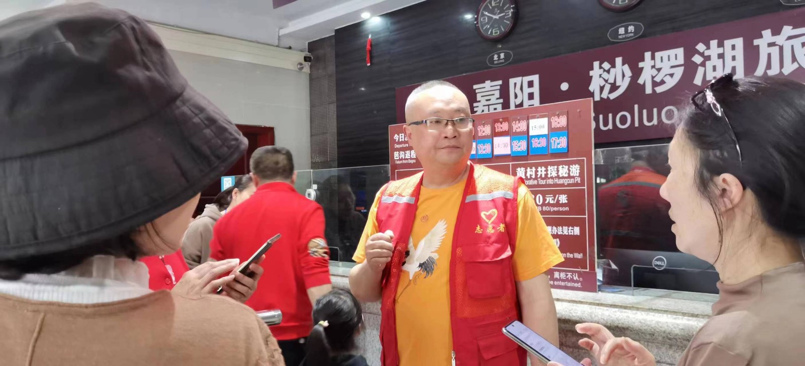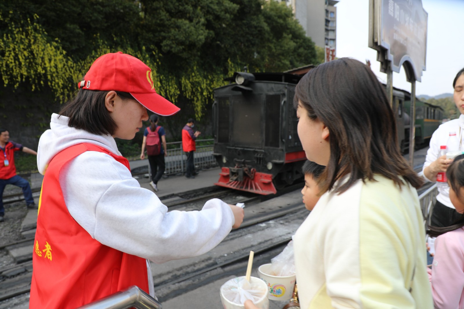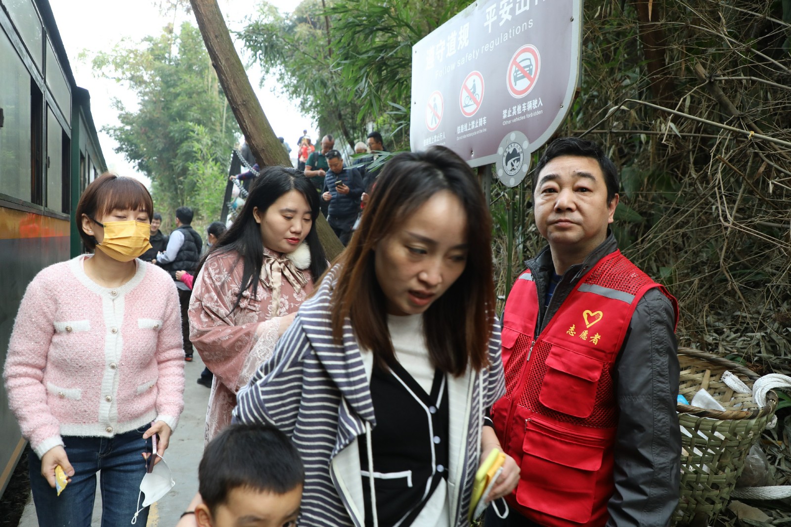 网上订购、线下出票、旅游咨询、小火车讲解、铛铛车服务、入井参观、秩序维持,川投峨旅公司职工全体出动。全程滚动发班、短途间隙利用、旅行社工作对接、散客们接待咨询……职工们从清晨一直忙到晚上。