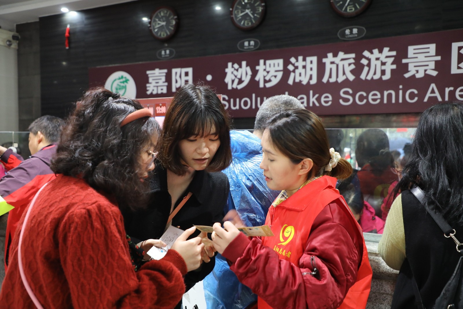 阳春三月,菜花金黄,一列冒着蒸汽、吐着白烟的小火车带着“呜呜”的汽笛声从花丛中穿过,于是山被唤醒了,花儿们竞相开放争奇斗艳,水被唤绿了,映照着蓝天上的朵朵白云。这列“比熊猫还要珍贵”的蒸汽小火车吸引着四面八方的游客,乐山周边县市的携妻带子之旅、川内各地的呼朋唤友之行、国内外旅行社嘉阳小火车赏春之程……游客们纷至沓来。游客接待中心,跃进站、芭蕉沟火车站、黄村井观光矿井,芭蕉沟大街小巷,到处挤满了前来观光的人群。“一票难求、一餐难求”,嘉阳景区旅游火得发烫。花季之旅自启动到3月12日,接待游客超过5万人次。