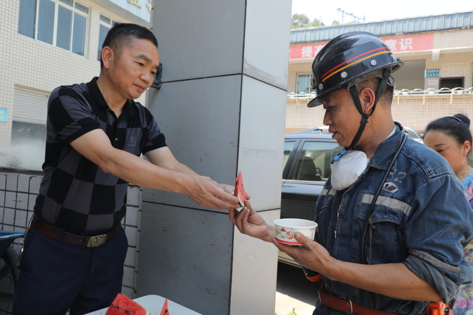 入伏以来,矿区高温潮湿闷热现象十分明显,煤矿炭坝、工业广场、主井上车场、检修车间等场所持续多日超过35℃,最高达到39℃。为避免职工中暑和热射病发生,煤矿女工委组织矿办科室女职工和后勤人员扎实开展送清凉活动,为让更多的职工吃上冰镇的凉糕、冰粉和可口的西瓜,专门选择了离工业广场和车间最近的井口处送清凉。目前,嘉阳煤矿女工委员会已累计现场送冰镇凉糕1120块,冰粉480碗,西瓜640斤。女工委表示只要气温超过35℃都将开展送清凉活动。