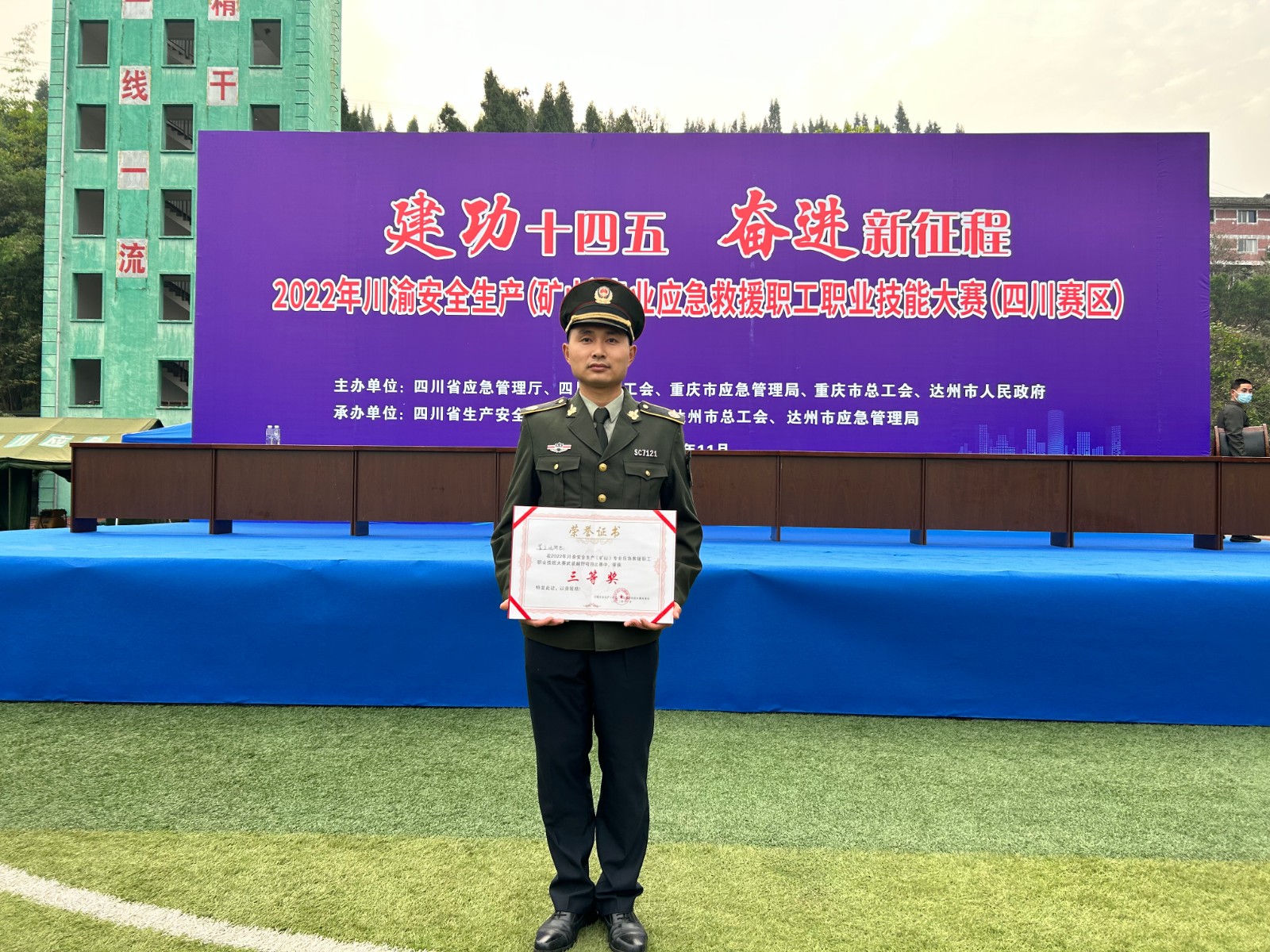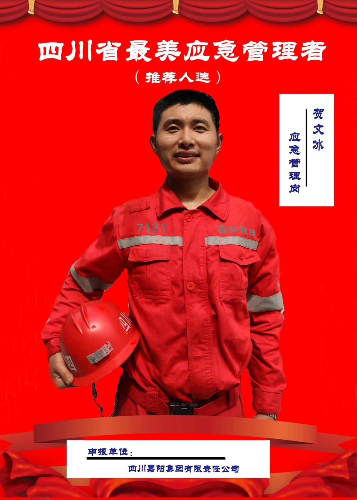 贺文冰、中共党员、35岁,2013年加入华体会平台,华体会(中国)一站式服务平台救护队,现任救护队二小队队长。先后获得“四川省矿山救护总队2013第一期新队员培训优秀学员”、“第十五届四川省矿山救援技术竞赛综合成绩优胜奖”、“2022年川渝安全生产矿山专业应急救援职工职业技能大赛三等奖”、“乐山市防灾减灾科普讲解大赛二等奖”、被授予“乐山市2023-2026年防灾减灾科学传播师”。