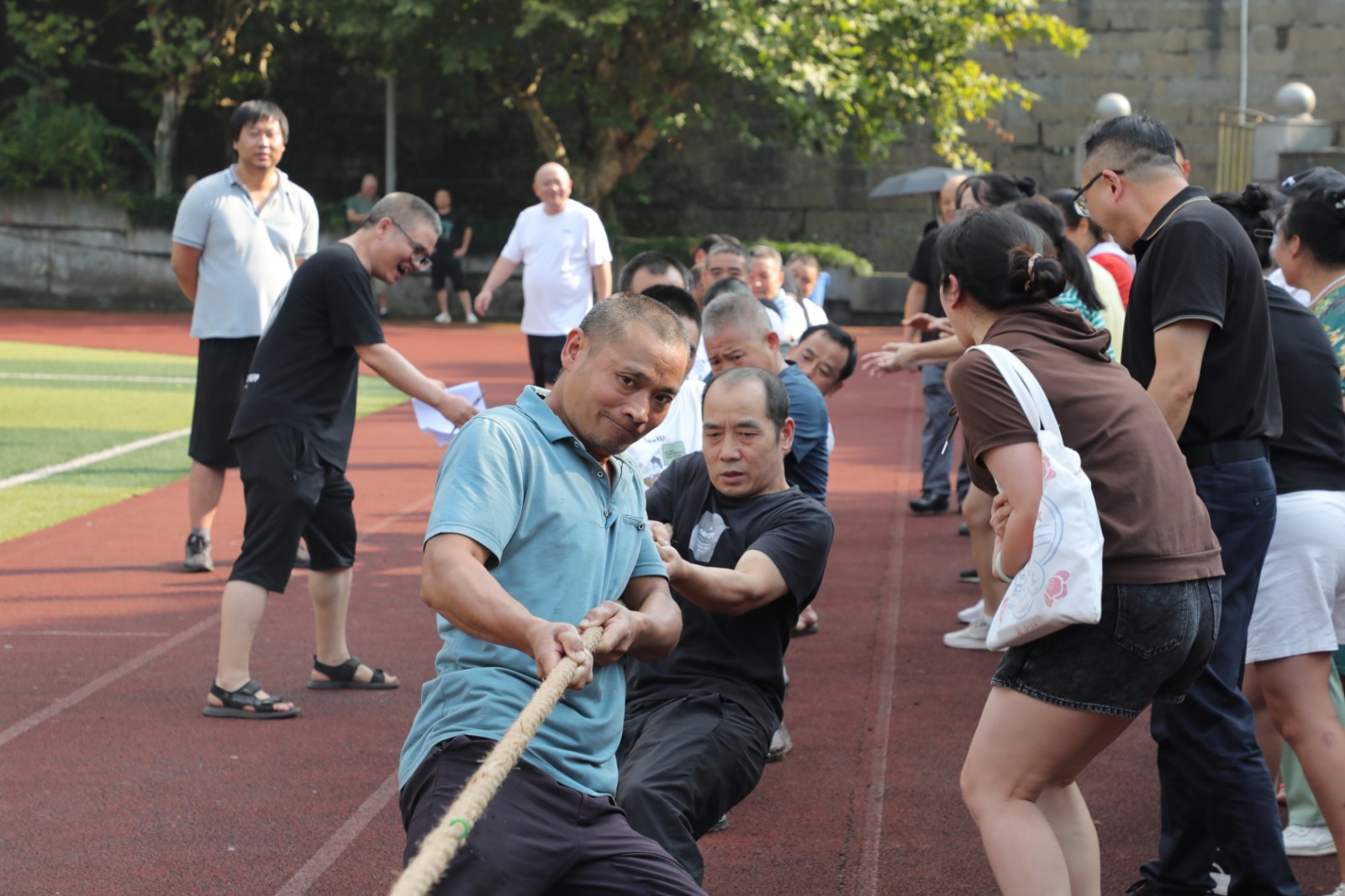 “一二三,加油!一二三!加油!”嘉阳官斗山足球场助威呐喊欢呼声此起彼伏,瞬间矿山热闹非凡。9月26日下午,公司“国庆”职工拔河比赛激情开赛。
