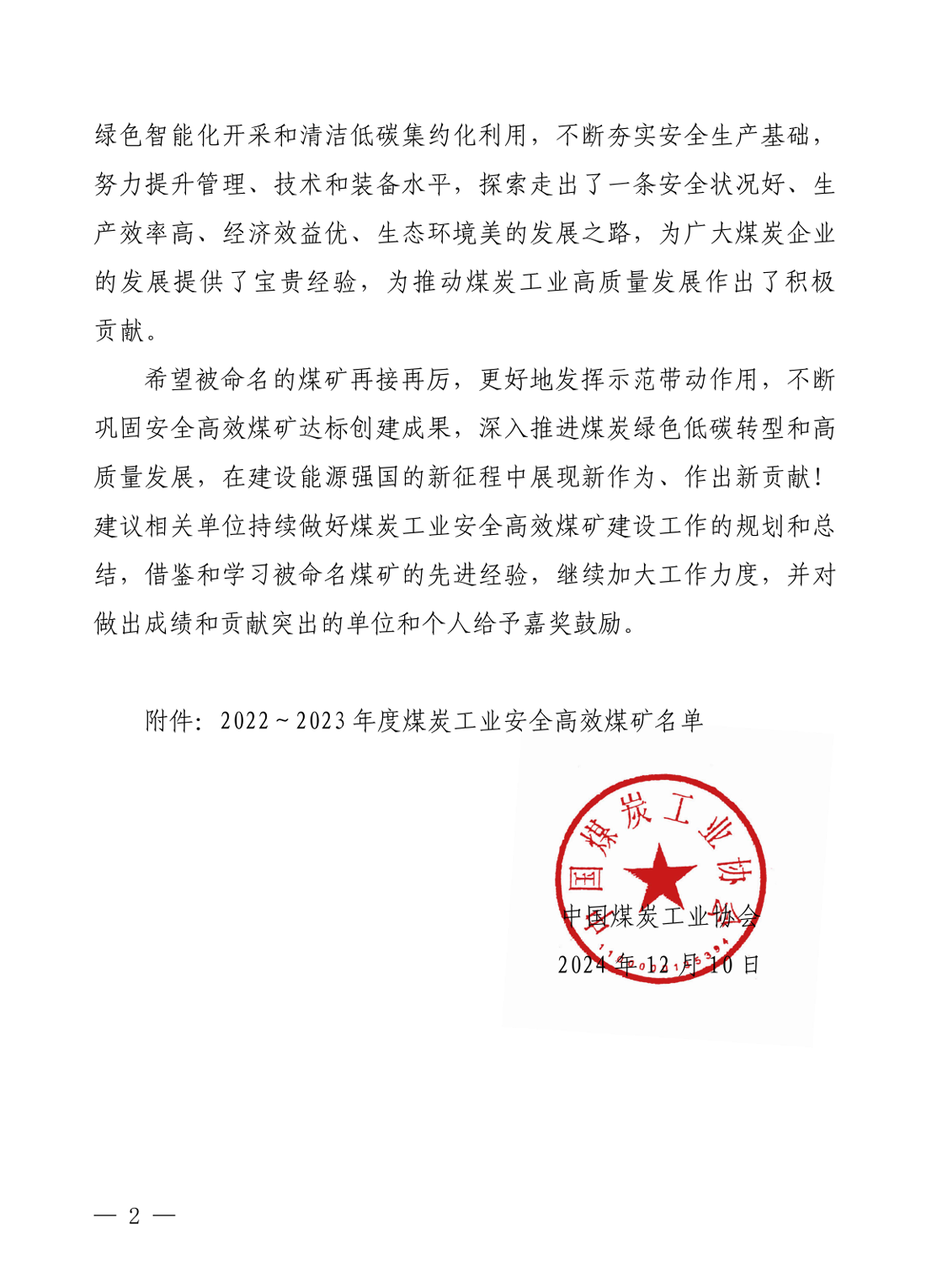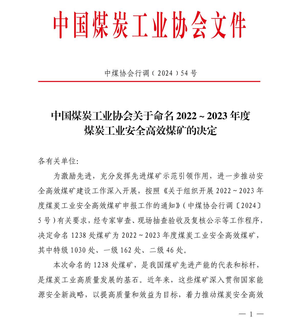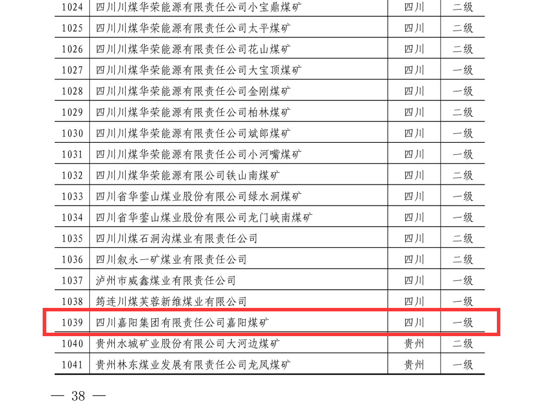 近日,中国煤炭工业协会印发关于命名2022年-2023年度煤炭工业安全高效煤矿的决定,嘉阳煤矿再次荣获“全国煤炭工业一级安全高效矿井”称号,这是对煤矿安全生产标准化和智能化改造成果的又一高度肯定。