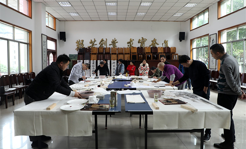 为庆祝建矿80周年,集团公司特邀四川作家协会和省书画协会伍立杨、牛放、王发强等7位书画家来矿进行书画创作,描绘幸福美丽嘉阳。
