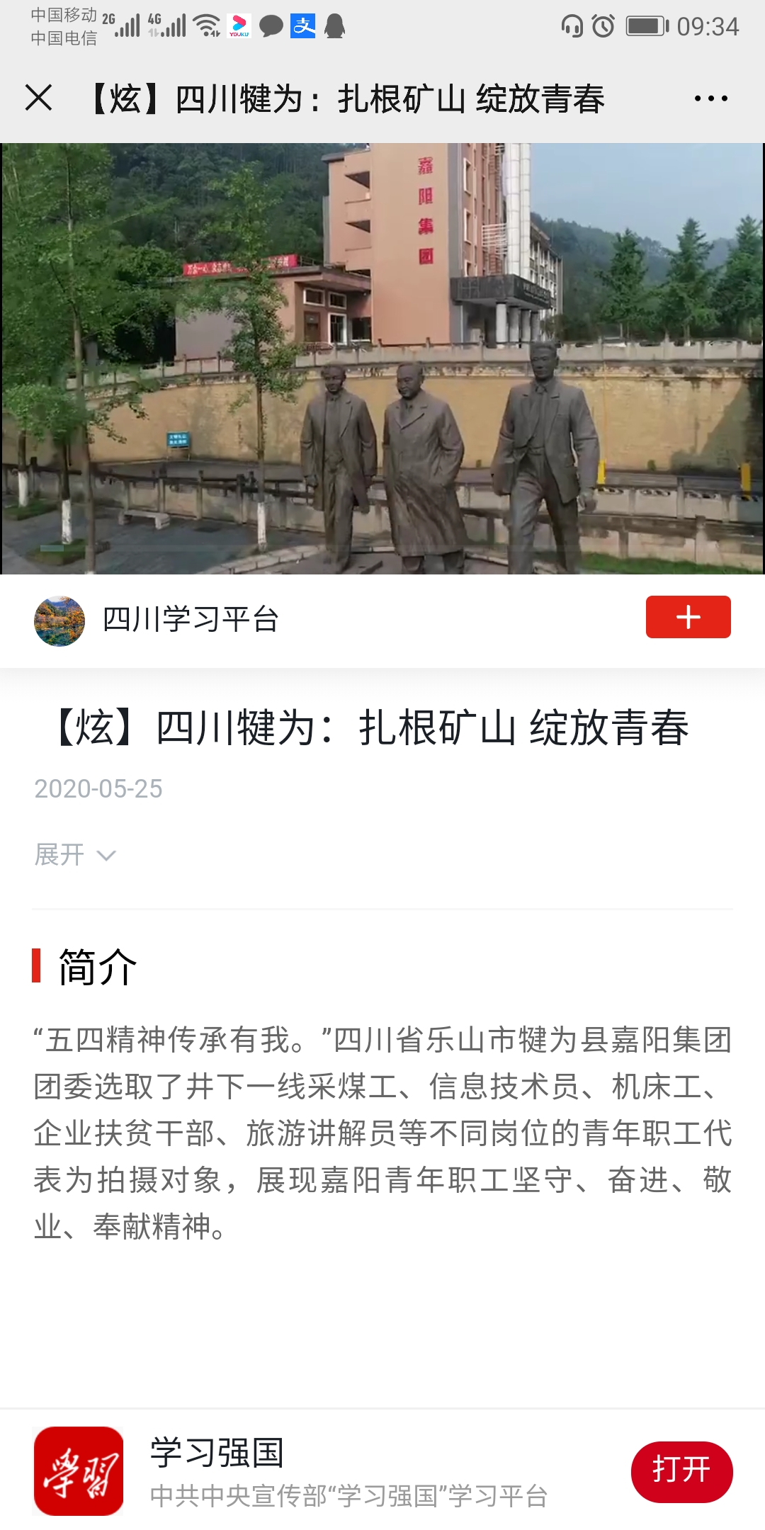 “看,咱嘉阳上‘学习强国’平台了!”由华体会平台,华体会(中国)一站式服务平台团委组织拍摄的短视频“燃烧的青春”亮相‘学习强国’四川平台,短视频迅速在朋友圈刷屏成为热议话题。