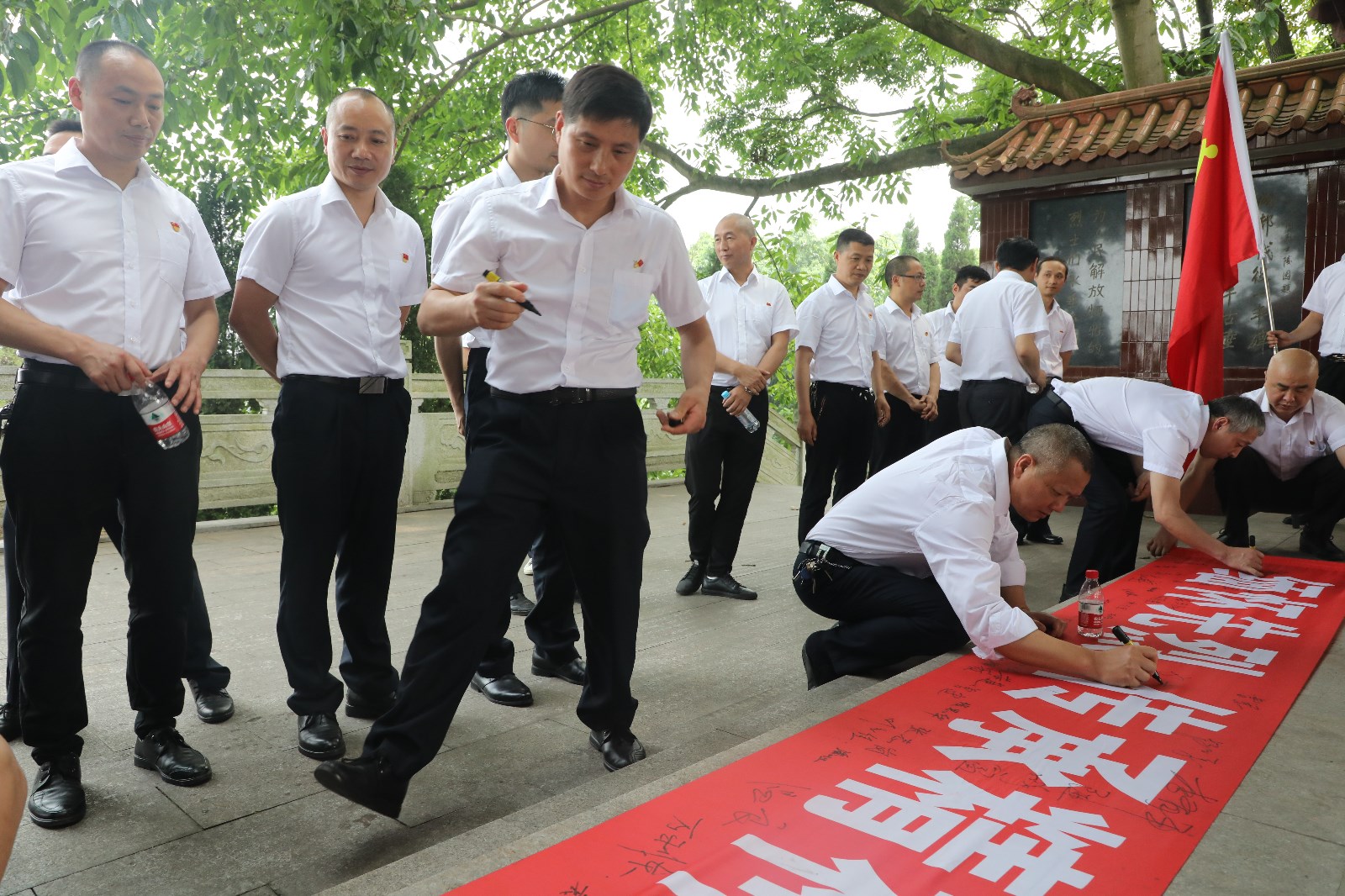 当天下午3时许,36名党员干部整齐列队缓缓走向“竹园铺战斗胜利纪念碑”,在纪念碑前,全体党员怀揣着对革命先烈的敬仰之情齐唱国歌,在采掘副总工程师李有平带领下重温入党誓词,抒发着内心至真至纯的爱党爱国情怀。随后,两名党员为烈士敬献花圈,采掘副总工程师李有平,地测副总工程师、矿办第二支部书记刘上安上前向纪念碑鞠躬并整理挽联,其余党员有序走到纪念碑前为烈士敬献鲜花。在烈士墓地,全体党员神情凝重缓缓而行,回顾革命先烈浴血奋战的幕幕场景,感触和平来之不易。在纪念园凉亭中,全体党员围坐于四周聆听矿办一支部书记万利东讲党课,来自采一队、掘一队、通风队的三名党员代表畅谈党史学习体会,每名党员通过党史学习教育有所悟、有所思,更加坚定了克服煤矿安全压力大、生产任务重、点多面广战线长等困难的决心,纷纷表示理应继承和发扬“艰苦创业,求实奋进”的嘉阳精神,在深化改革的洪流之中“燃烧”自己、奉献力量,助推企业持续健康发展。活动高潮,全体党员干部在烈士纪念园作出全力抓好安全生产的郑重承诺,并在主题横幅上集体签名。(遥测维修班班长余雪同期声)