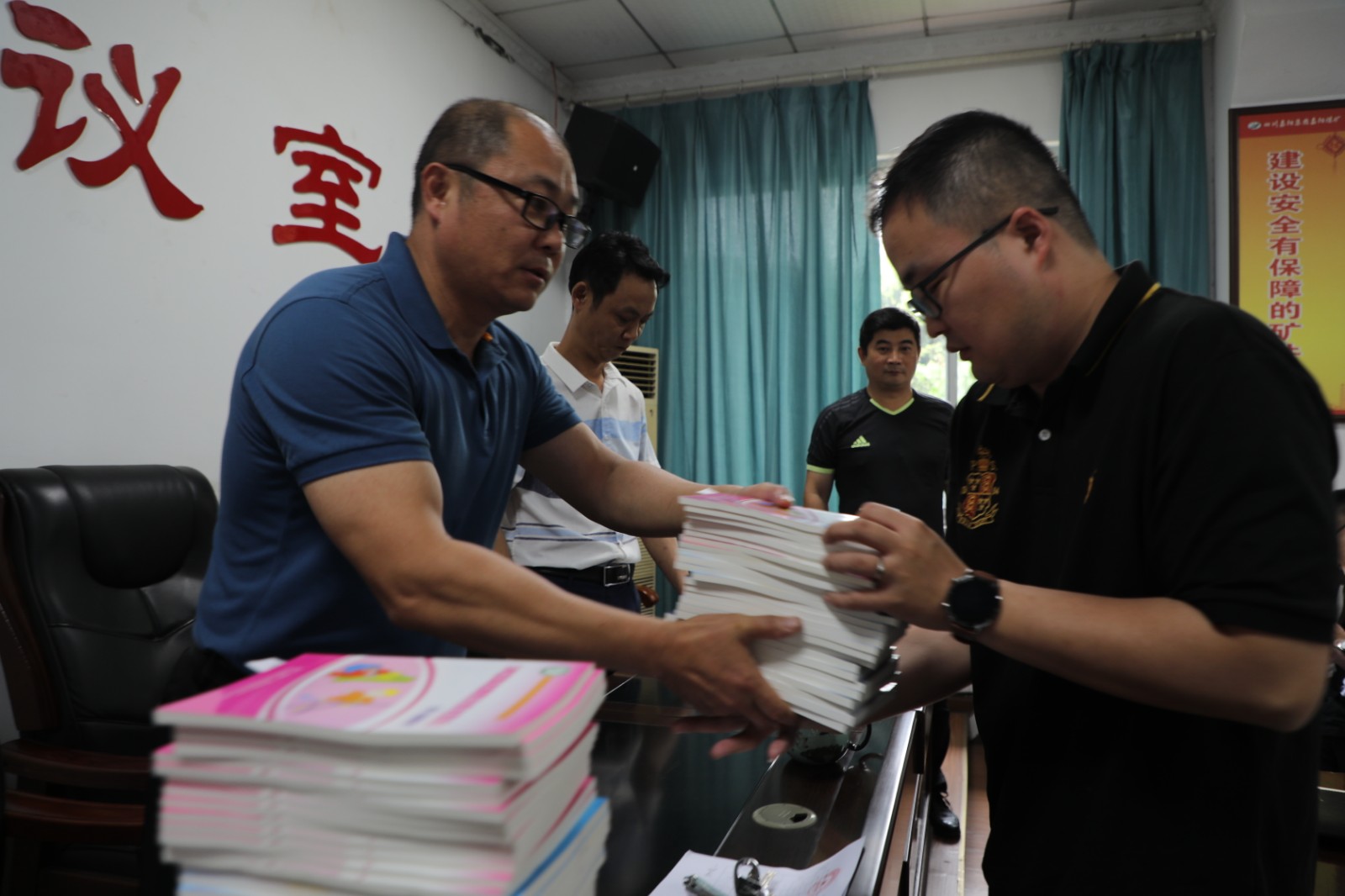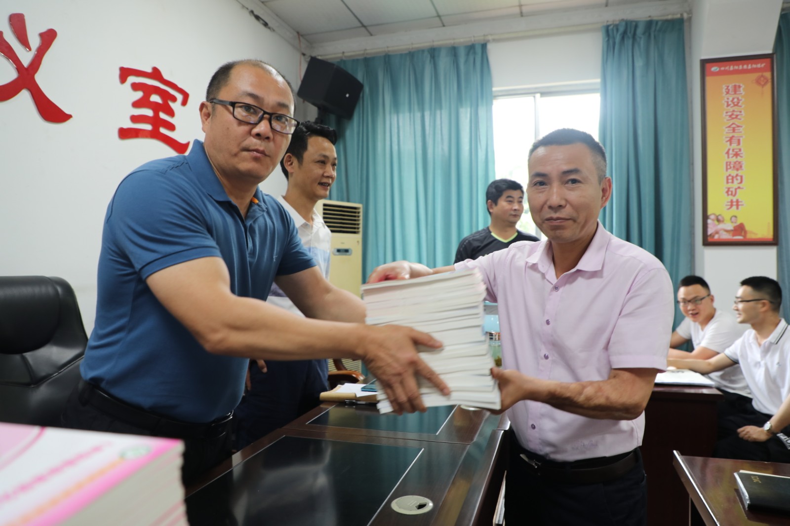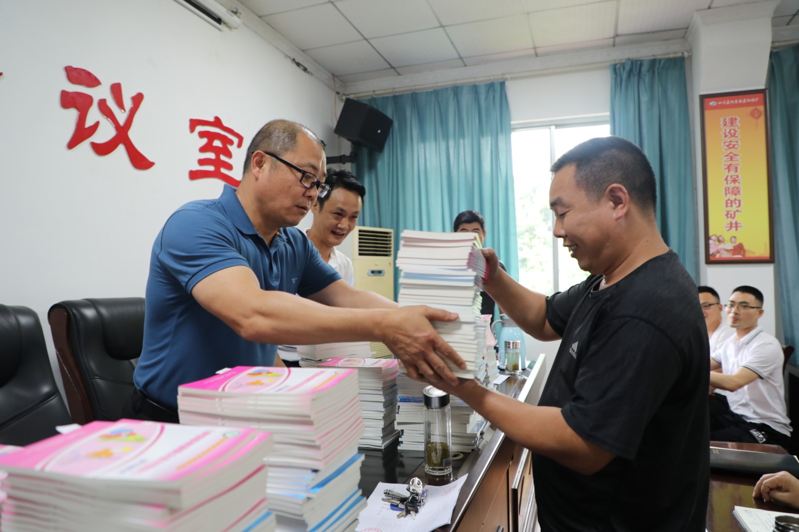 今年6月是第20个全国安全生产月,带着对煤矿安全生产的重视和对职工安全行为的关心,6月7日上午,华体会平台,华体会(中国)一站式服务平台总经理范勤英将三本安全类书籍发放到了煤矿11个队站的队长手中,勉励职工加强学习重视安全。