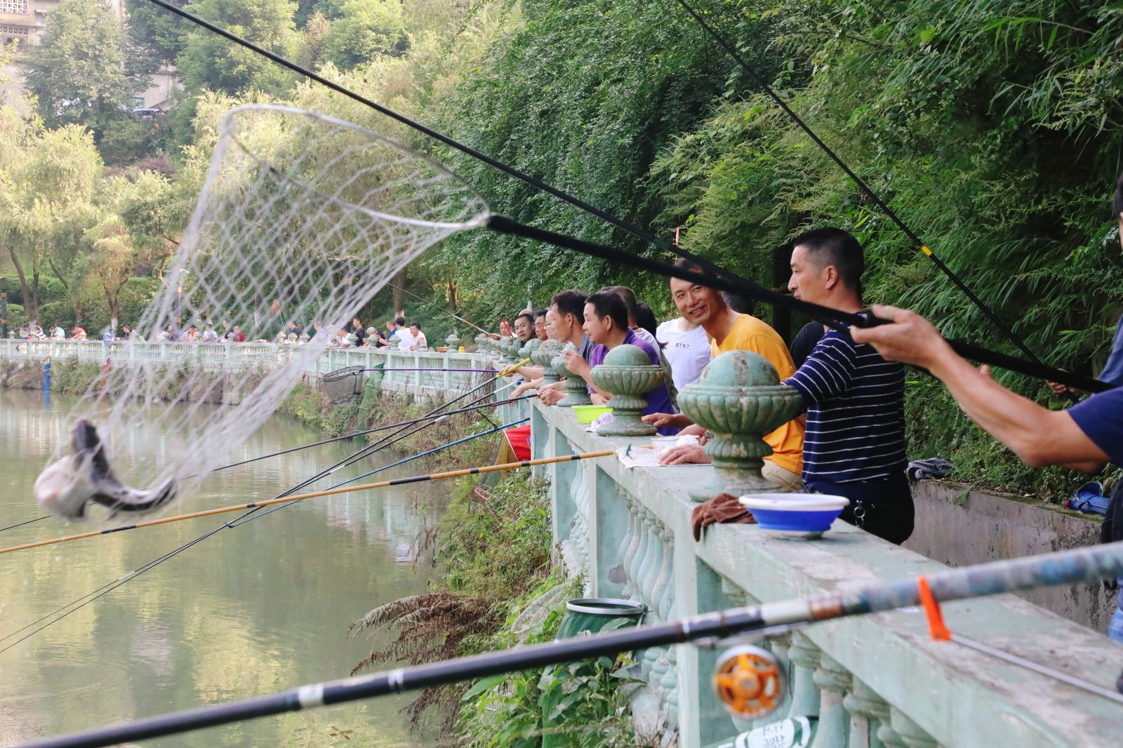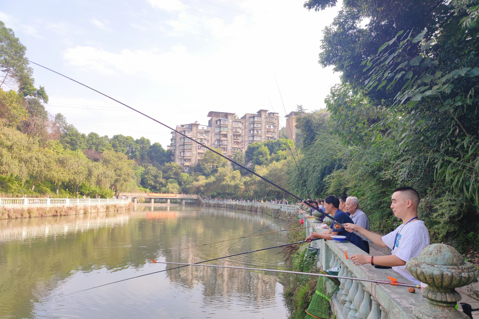 30日上午8时,公司“迎国庆”职工钓鱼比赛正式开钓,在秋高气爽、碧波荡漾的观音溪,参赛选手们个个兴致高昂,现场调试线组、鱼饵、鱼漂、下竿,聚精会神地注视着浮标,等待着鱼儿上钩。选手们各显身手,忙的不亦乐乎,随着一阵阵鱼儿拍打水花的声音传来,一条条鲜活的鲫鱼、鲤鱼被收进鱼护。今年还吸引了女钓手加入,钓者、观者共享其乐。比赛共设9支代表队、90余名选手参加,经过三个小时的比赛,机关队再次荣获冠军,综合服务公司获得第二名、嘉阳煤矿二队获得第三名。