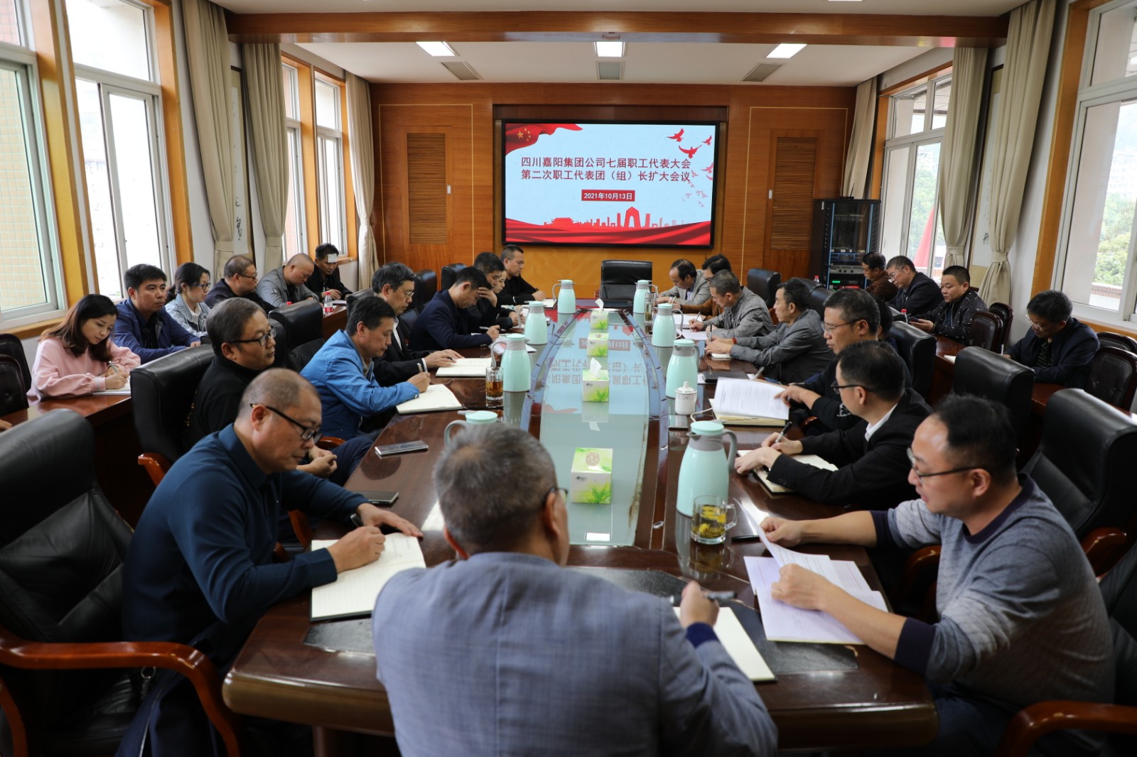 10月13日,华体会平台,华体会(中国)一站式服务平台召开七届职代会第二次代表团组长扩大会议,通报川投集团无偿划转川投峨旅30%股权至华体会平台,华体会(中国)一站式服务平台事项,审议推荐黄刚同志参评“四川省自强模范”。七届职代会主席团成员、工会委员、职工代表组长以及部分来自公司二级单位的职工代表共29人参加。
