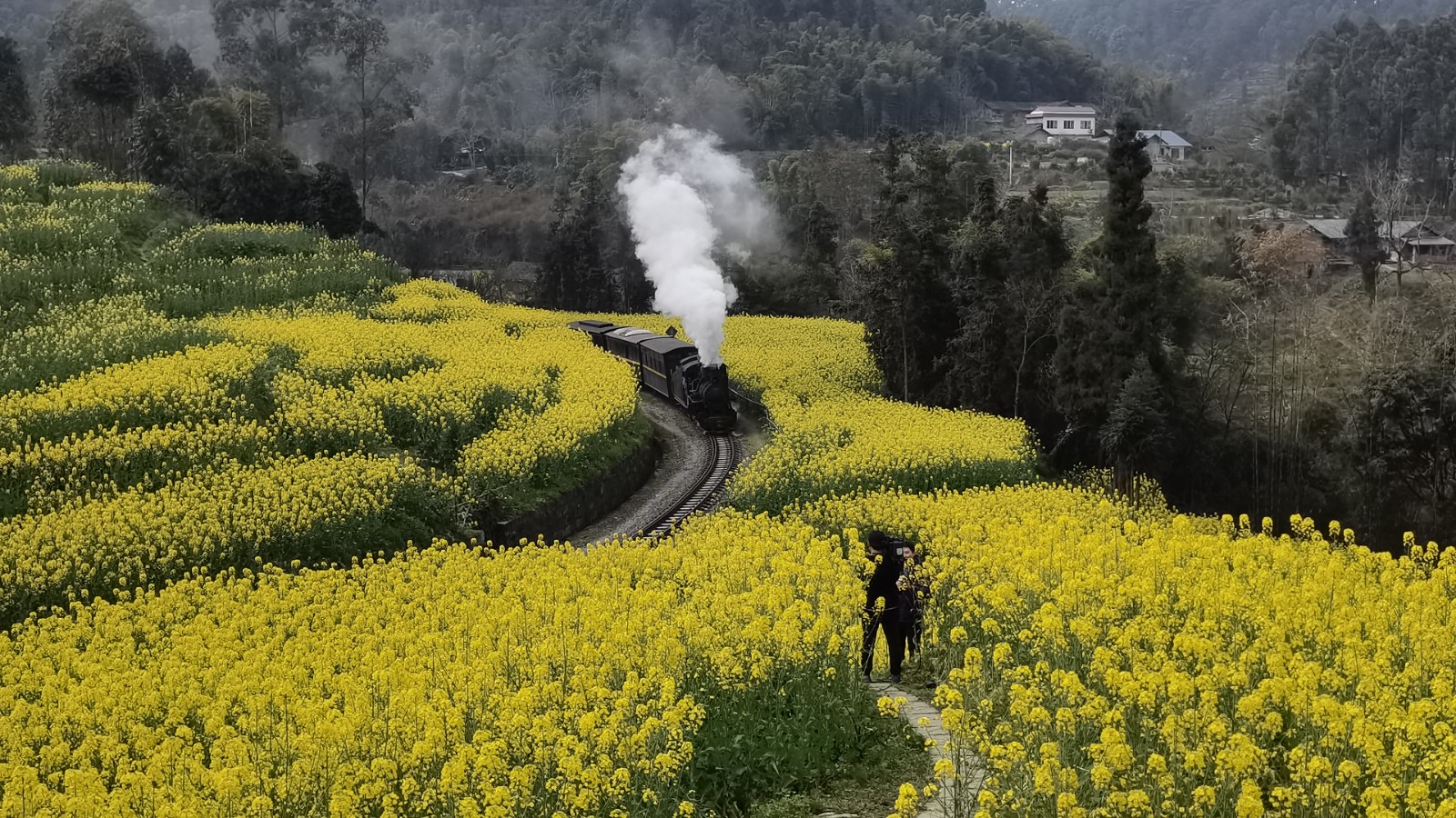 3月2日下午3时,中央电视台新闻频道新闻直播间“春天的中国”特别直播节目正式播出。随着金黄色的油菜花在现场连线镜头中的惊艳亮相,全中国的目光再一次聚焦“春日里的嘉阳小火车”。