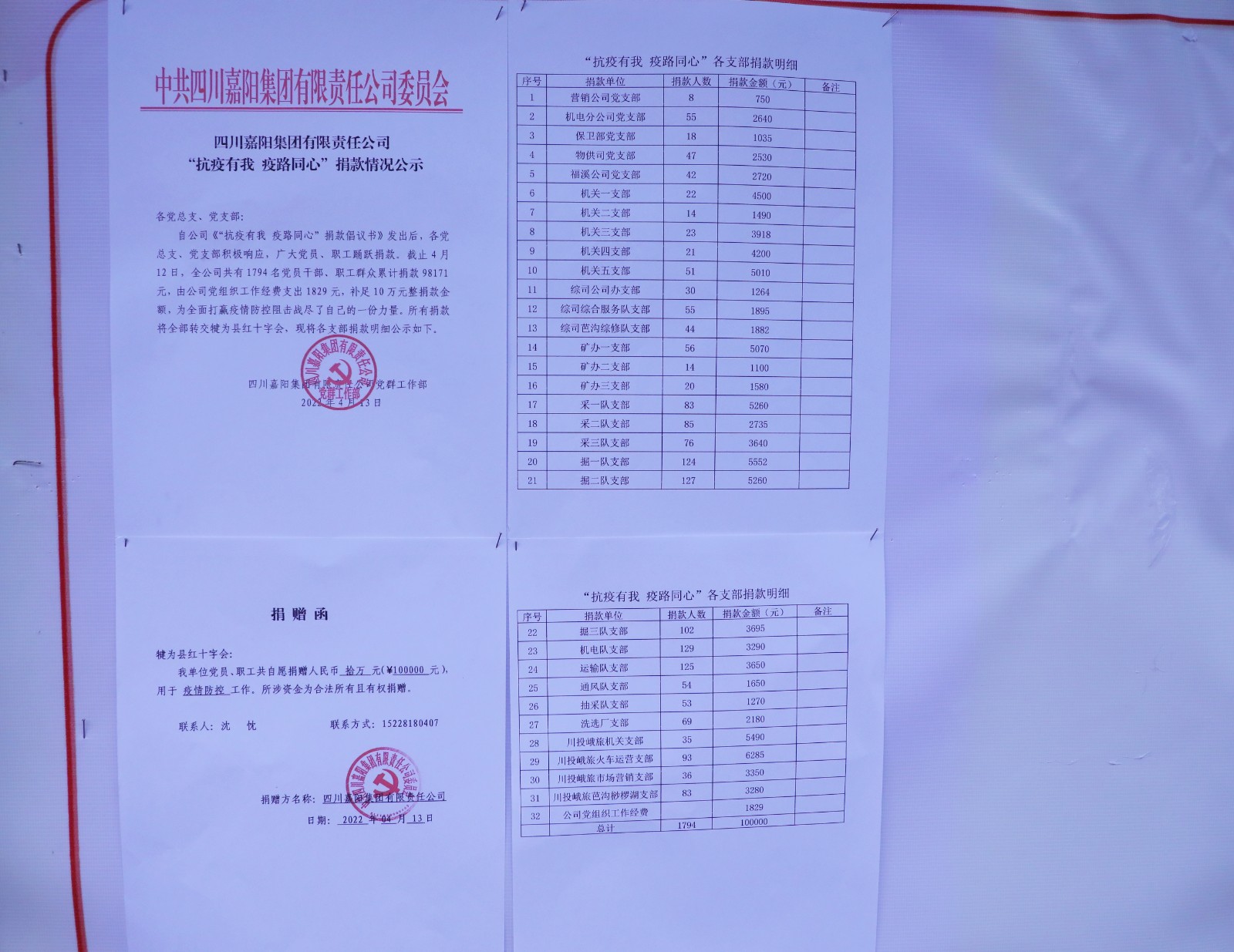 疫情爆发后,华体会平台,华体会(中国)一站式服务平台一边做好自身的疫情管控,一边发动党员、志愿者积极支援县城防疫。公司党委、工会在第一时间发出了“抗疫有我 疫路同心”捐款倡议,全体党员和职工积极响应,发扬“一方有难、八方支援”的精神,通过微信支付、当面上交党支部等不同方式踊跃捐款,助力疫情防控。点滴爱心汇聚汪洋,无私捐助凝聚真情,短短几天时间内,就收到1794人捐款98171元。