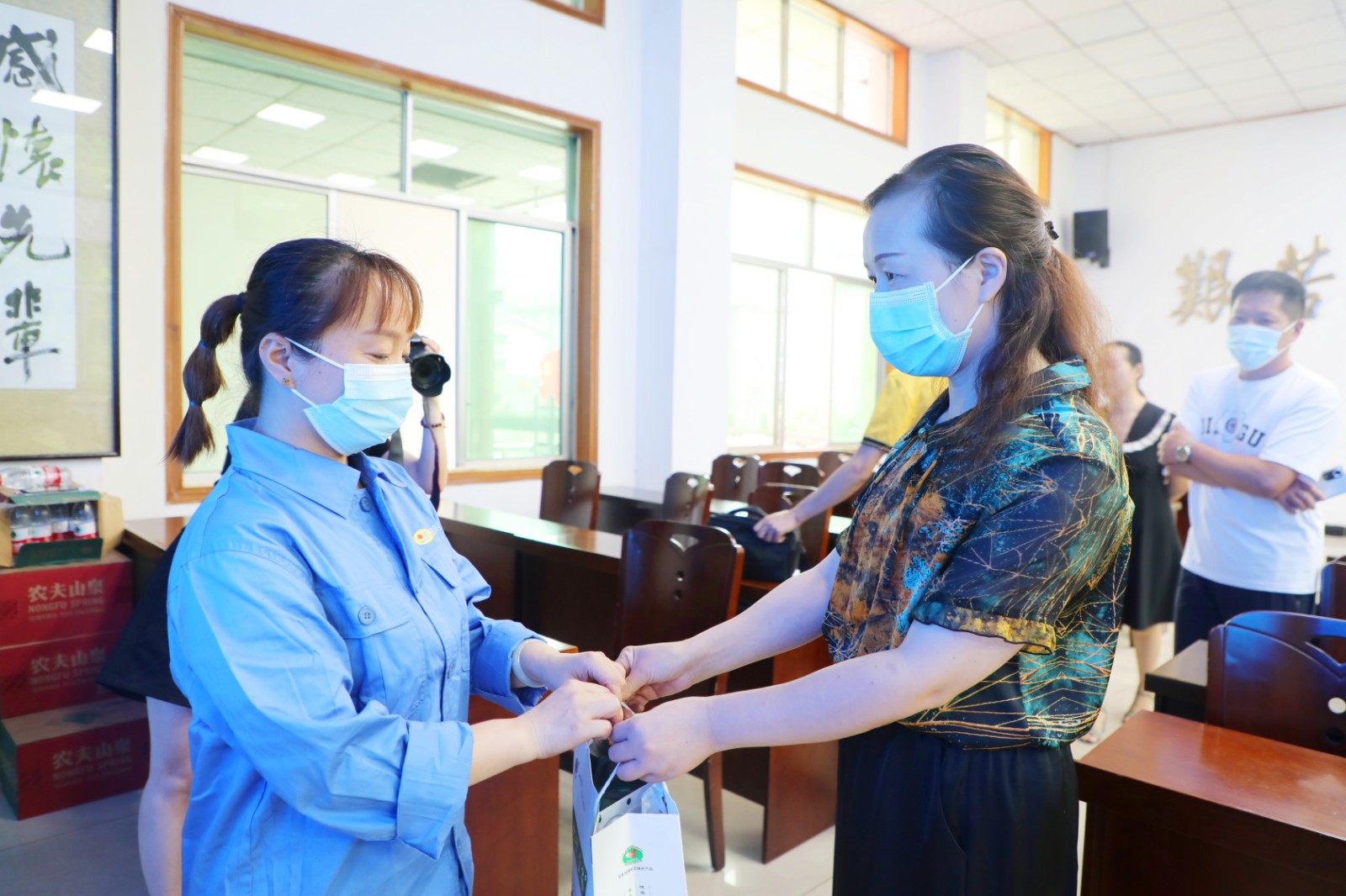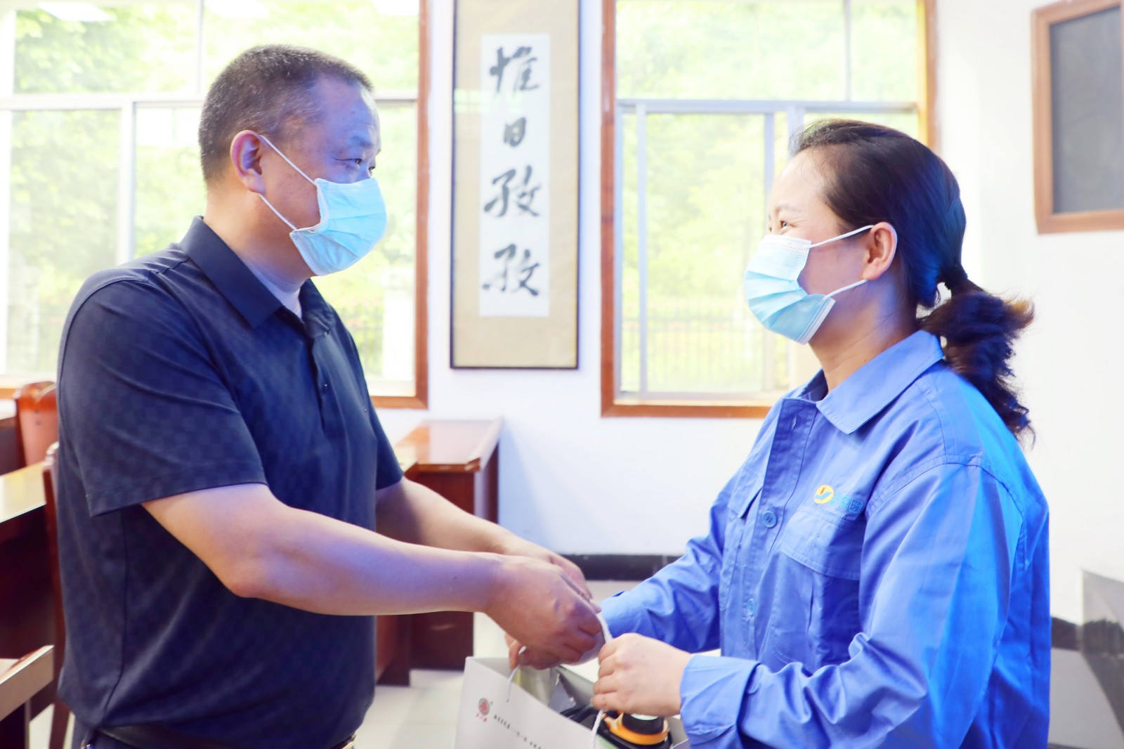 在一楼会议室,邓安林一行对坚守在一线的职工们代表们致以诚挚的问候和崇高的敬意,为他们送上水杯、金银花、菊花茶等防暑降温物品,并详细了解职工的生产工作情况和高温劳动防护措施落实情况,叮嘱广大职工做好疫情防控和自身防暑降温工作,合理调整作息时间,确保安全生产。邓安林强调,企业要努力为职工创造良好的生产作业环境,切实保障职工安全和身体健康,提高职工群众的获得感、幸福感、安全感,营造企业与职工共创共享的和谐氛围。