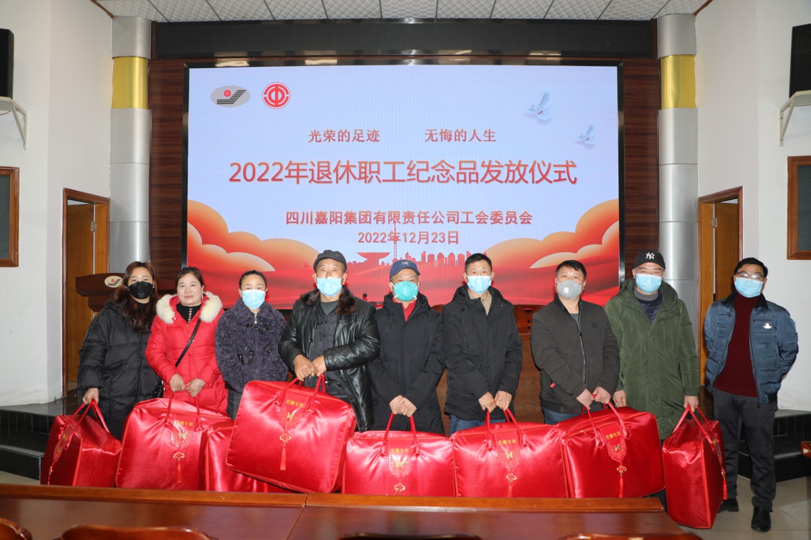 “莫道桑榆晚,为霞尚满天”。退休是人生的一大转折点,也是一个全新生活的开始,老同志们辛辛苦苦为嘉阳奉献几十载春秋,退出工作岗位后,可以有更多的时间照顾家庭、锻炼身体、享受美好生活。希望退休的同志能调整心态、适应新环境、开始新生活,乐享快乐的晚年,企业也将一如既往地关心、关爱大家。最后,衷心地祝愿所有退休老同志,老有所乐、老有所为、身体健康、阖家欢乐,万事如意!工会副主席张平亲手给参加仪式的每一位退休职工发放了纪念品并合影留念。
