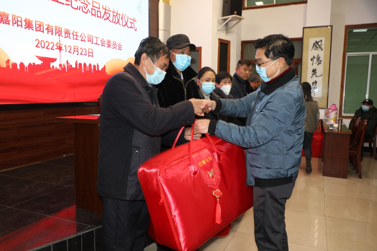 集团公司工会副主席张平向光荣退休的同志表示热烈地祝贺。为提升退休职工的荣誉感、归属感,集团公司于年末出台了《华体会平台,华体会(中国)一站式服务平台工会经费收支管理实施办法》,从2022年起,公司工会为当年退休的每位退休职工发放一份纪念品,今年,退休职工纪念品的发放共34人,没能来现场的已安排自行到指定地点领取。张平真切地说:退休纪念品的发放不仅是为了给大家留下一个永久性的纪念,也体现了公司党政工组织对我们老同志的关怀和祝福。你们在各自岗位上,不畏艰难、勤勤恳恳、任劳任怨,与企业同呼吸、共命运,风雨走过几十年,把青春和力量无私地奉献给了企业,奉献给了嘉阳的改革发展。2022年,华体会平台,华体会(中国)一站式服务平台全年营业收入、经营利润再创新高,煤炭旅游双主业发展稳步向前……成绩的取得,离不开每一位嘉阳人的辛勤付出与无私奉献,在此,向各位退休同志表示崇高的敬意。
